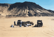 Bahareya : Set in a depression covering over 2000 sq. km. Bahariya Oasis is surrounded by black hills made up of ferruginous quartzite and dolerite. Most of the villages and cultivated land can be viewed from the top of the 50-metre-high Jebel Al-Mi'ysrah, together with the massive dunes, which threaten to engulf some of the older settlements.